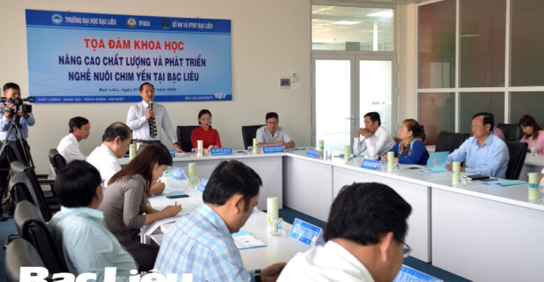 Sáng 21/7, Trường đại học Bạc Liêu (ĐHBL) phối hợp với Sở NN&PTNT, Hội Nghề yến Bạc Liêu, Hiệp hội Trang trại và Doanh nghiệp nông nghiệp Việt Nam tổ chức tọa đàm khoa học nâng cao chất lượng và phát triển nghề nuôi chim yến tại Bạc Liêu (ảnh).
