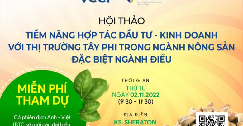 Nhằm giúp các doanh nghiệp điều Việt Nam nói riêng và các doanh nghiệp ngành nông sản – thực phẩm nói chung tiếp cận thông tin về các chính sách ưu đãi đầu tư vào các khu công nghiệp tại thị trường các nước Châu Phi. Phòng Thương mại và Công nghiệp Việt Nam chi nhánh tại TP.HCM phối hợp với ARISE – là tổ chức có trụ sở tại Dubai – Qatar đang triển khai, xây dựng và vận hành hệ sinh thái công nghiệp trên khắp Châu Phi với sự hợp tác của các chính phủ Châu Phi tổ chức hội thảo với chủ đề: tiềm năng hợp tác đầu tư – kinh doanh với thị trường Tây Phi trong ngành nông sản, đặc biệt ngành điều.