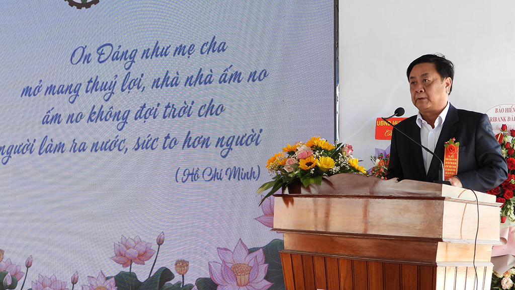 Tại buổi Lễ, Phó Thủ tướng Chính phủ Trần Lưu Quang và các đại biểu đã thực hiện nghi thức bấm nút khánh thành công trình đầu mối Hồ chứa nước Ea H’leo 1.