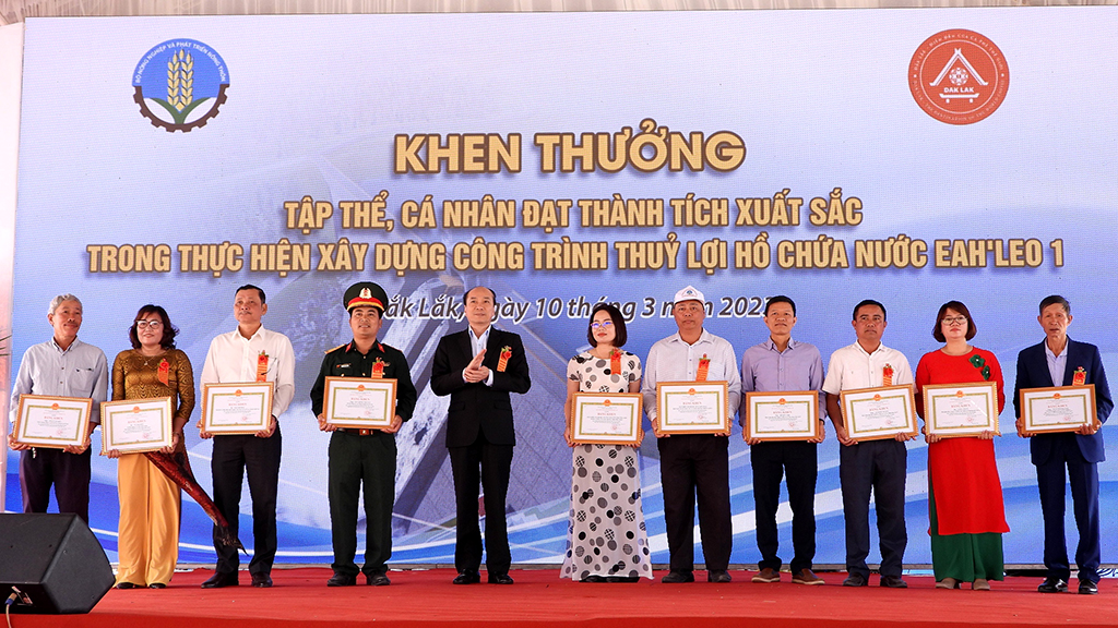 Ghi nhận công lao đóng góp của các tập thể và cá nhân trong quá trình triển khai xây dựng công trình, tại buổi Lễ, Bộ trưởng Bộ NN-PTNT Lê Minh Hoan đã trao tặng Bằng khen cho 7 tập thể và 23 cá nhân có thành tích xuất sắc trong thi công xây dựng công trình Hồ chứa nước Ea H’leo 1; Chủ tịch UBND tỉnh Phạm Ngọc Nghị tặng Bằng khen cho 2 tập thể và 27 cá nhân có thành tích xuất sắc trong thi công xây dựng công trình Hồ chứa nước Ea H’leo 1.