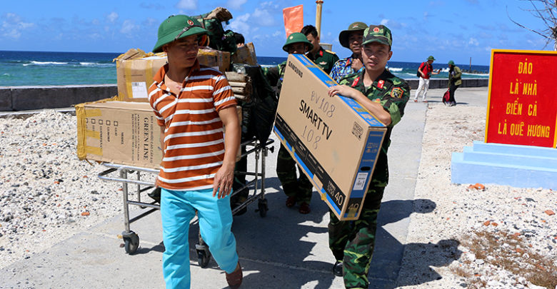 Những thùng quà Tết đầu tiên đến đảo Song Tử Tây.