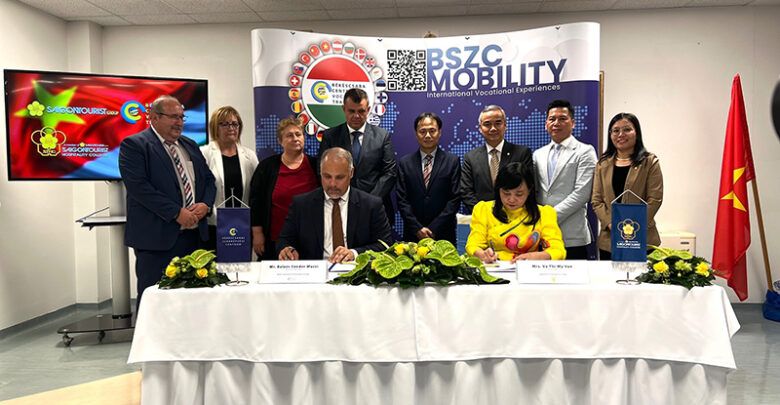 Tại Trung tâm Đào tạo nghề Békéscsaba – Hungary; vào ngày 20/9/2023, đã tổ chức lễ ký kết hợp tác giữa Trường Du lịch và Khách sạn Saigontourist thuộc Tổng Công ty Du lịch Sài Gòn (Saigontourist Group) và Trung tâm Đào tạo nghề Békéscsaba.